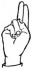 На ћирилици написано ВОЈИН ГАЋЕ састоји се из 9 слова [?]. Исписано ћириличном једноручном азбуком за глувонеме: